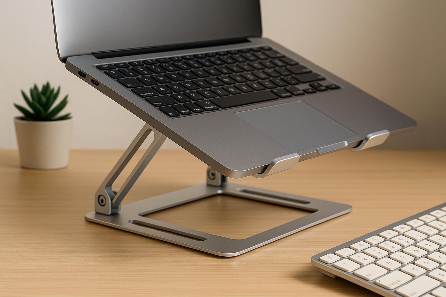 ノートPCを長時間使うと姿勢が悪くなりやすいため、角度を調整できるスタンドが便利です。高さを上げることで目線が自然な位置になり、首や肩の負担が軽減されます。