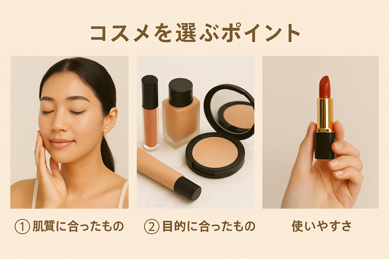 コスメは「なんとなく良さそう」で選んでしまいがちですが、目的を明確にすると選びやすくなり、失敗も減ります。ここでは、シーン別・目的別に上手な選び方を紹介します。