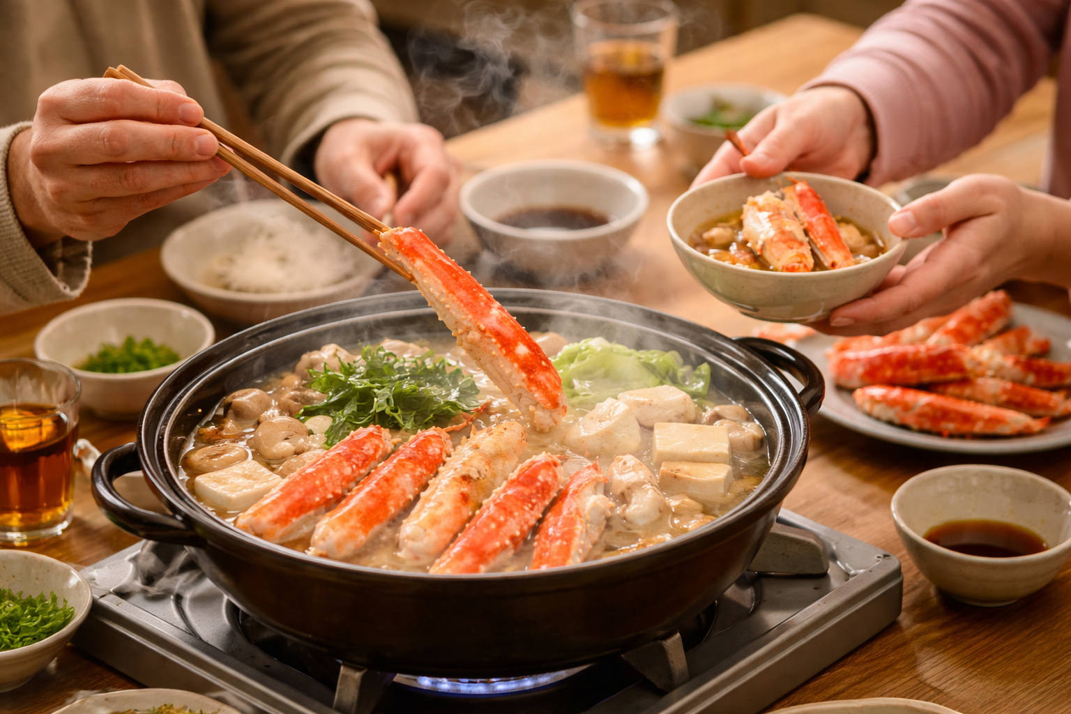 蟹の満足度を左右するのは、殻の大きさよりも「身の詰まり」。かにまみれは、食べる人が一番うれしいポイントに軸を置いています。鍋や焼き、蟹しゃぶなど、調理しても存在感が残りやすく、家族で食卓を囲むシーンでも“取り分けやすい・食べやすい”を意識した選び方がしやすいのがメリットです。